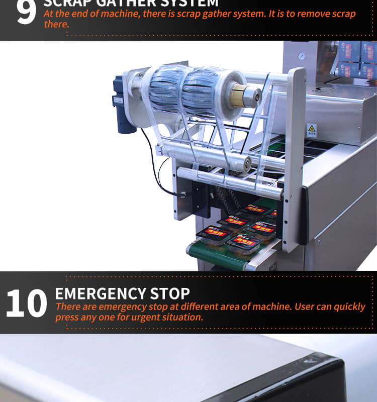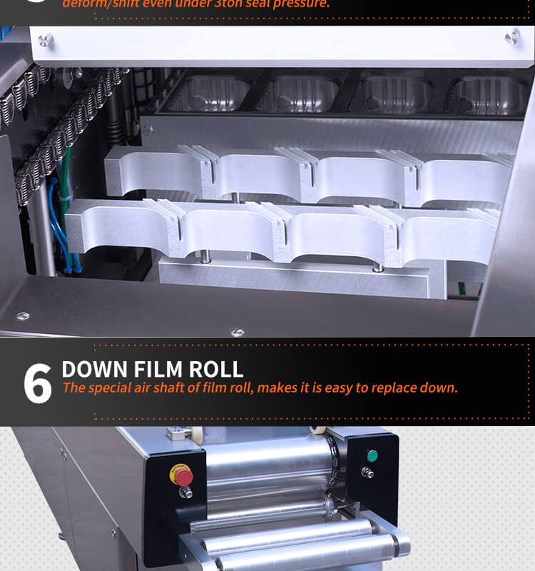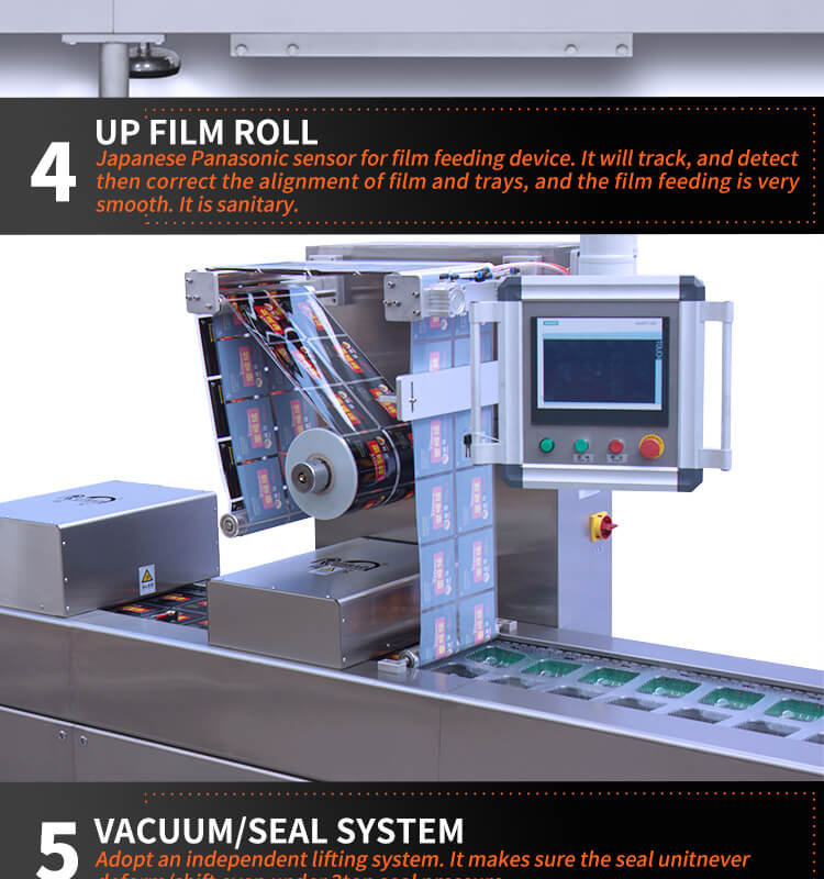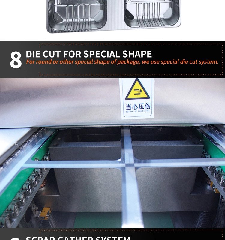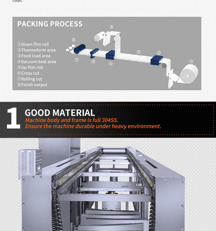 machine working procedure: down film thermoform shape-manual loading -printing date-vacuum-sealing-trimming