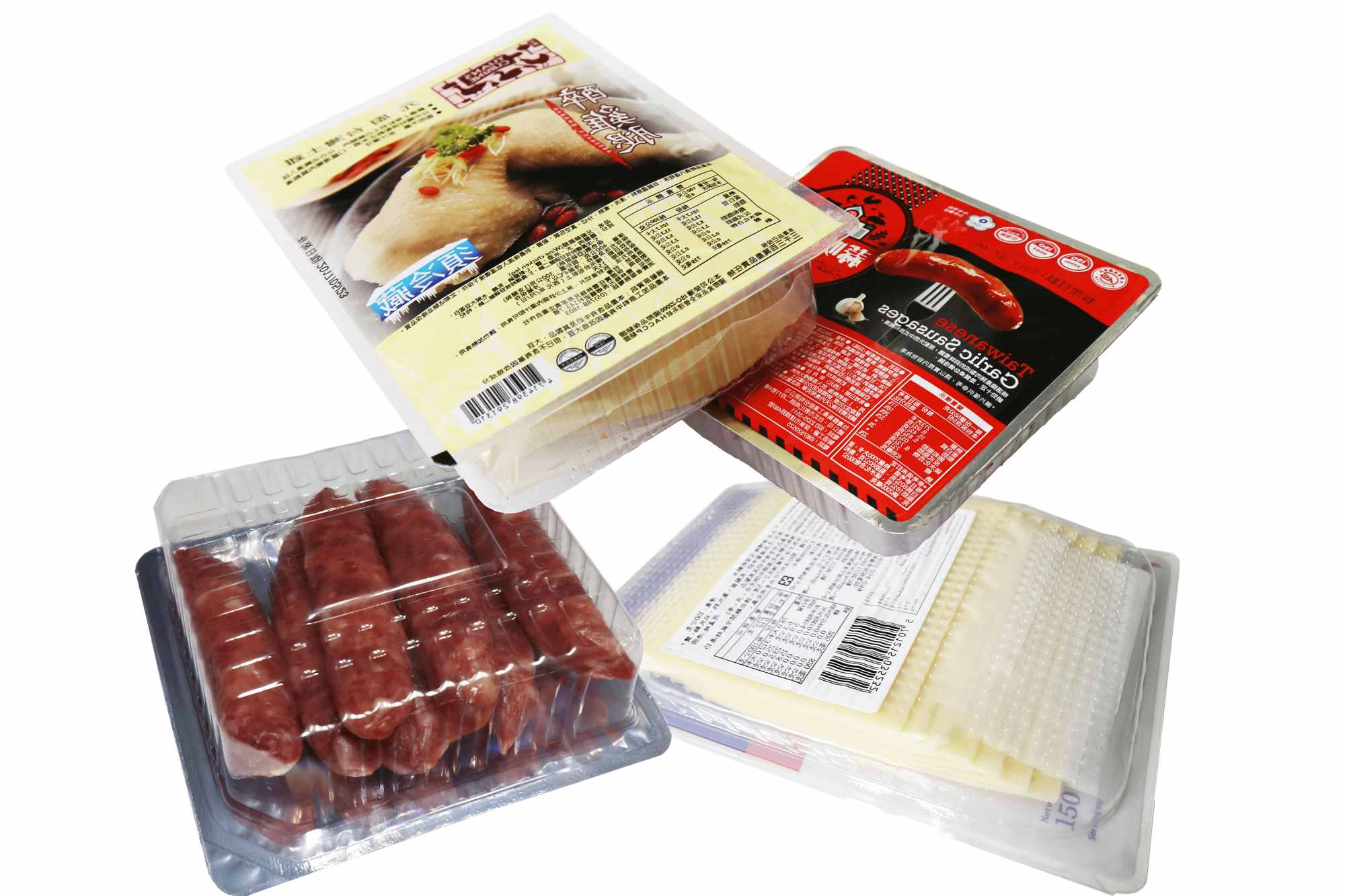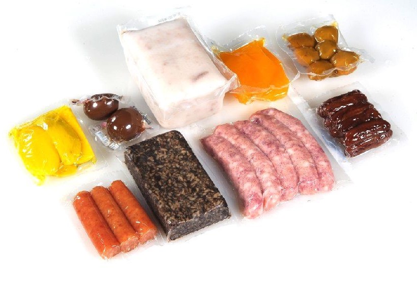 sausage seafood food in rigid film